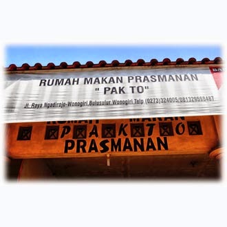 terletak di jalan raya wonogiri- ngadirojo.rumah makan prasmanan pak to letaknya dipinggir jalan.banyak dikunjungi para pencinta kuliner yang melewati wilayah wonogiri